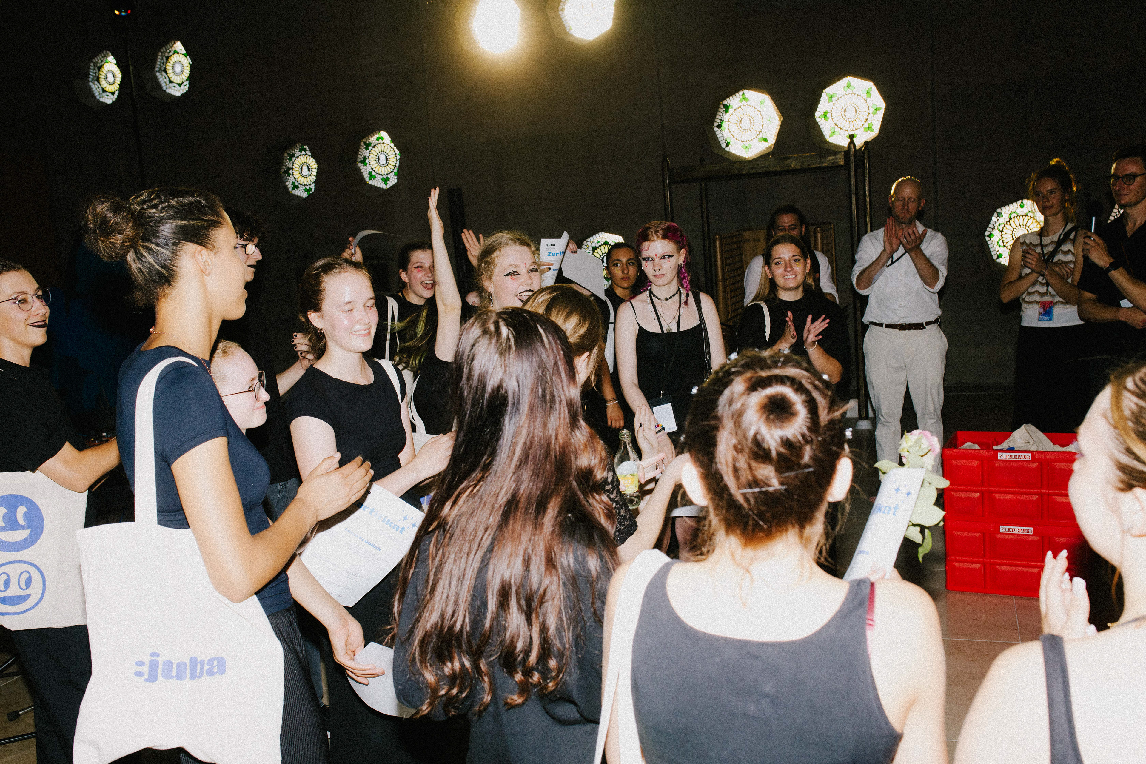 Das diesjährige :juba-Thema waren Gefühle - perfekt passend zur affektreichen Barockmusik - und das Ergebnis war dann im Sommer im Ventana in Köln Sülz zu erleben. Unter Anleitung der beiden Lehrer Ben und Julian entstand ein überwältigendes Bühnenbild, Schüler*innen kreierten mit ihren Musikinstrumenten gemeinsam Atmosphären und machten die (Barock)musik durch Tanz- und Bewegungsperformances auch visuell erlebbar. Nicht zu vergessen - das unschlagbare Schminkteam! :)